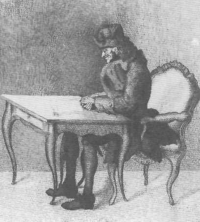 Voltaire à sa table de travail, estampe Séné. Bibliothèque Nationale de France. Photo Bulloz.